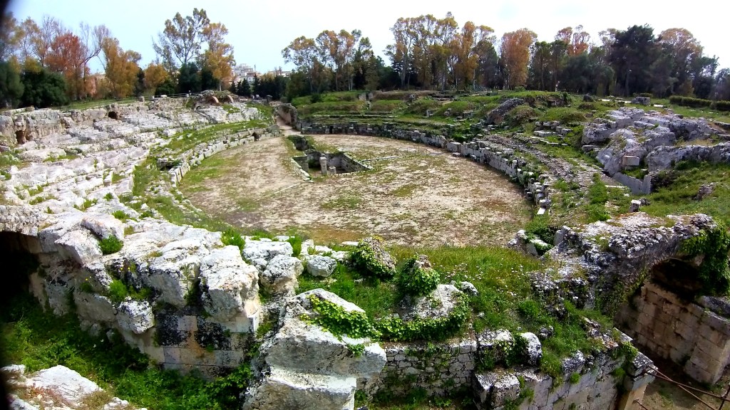 L’origine della fonte si attribuisce a un amore non corrisposto: Alfeo, il figlio del dio Oceano, si innamorò perdutamente della ninfa Aretusa, che invece non voleva proprio saperne. Stanca di fuggire dalle avance del suo spasimante, Aretusa chiese aiuto alla Dea Artemide, la quale la trasformò nella famosa fonte. Alfeo, per non rinunciare alla sua ossessione amorosa, chiese anch’esso aiuto alle divinità e si fece trasformare in un fiume per ricongiungersi in eterno con la sua amata, lasciandola in qualche modo senza via di scampo…. un po’ come nelle moderne storie di stalking insomma. 🙂