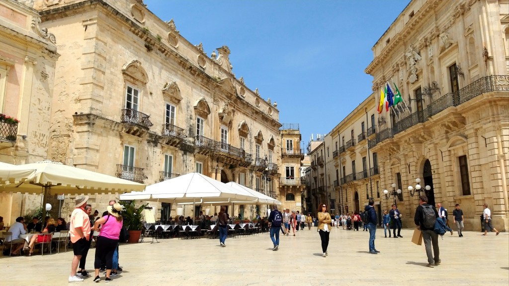 Le piazze di Ortigia sembrano fatte apposta per riempirsi di bellezza, sorseggiando un caffè e degustando un cannolo siciliano seduti in uno dei tanti bar. A uno di quei tavoli ho avuto l’onore di incontrare Mimmo Lucano, per me davvero una celebrity degna di nota.
