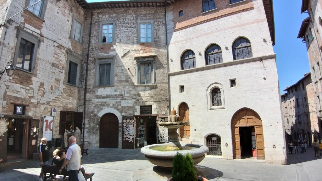 Non potevamo lasciare Gubbio senza compiere tre giri intorno alla Fontana dei Matti ubicata di fronte al Palazzo del Bargello. Si narra che lo straniero che compie tre giri di corsa intorno alla fontana e accetta di essere bagnato con l’acqua della stessa, diventa cittadino di Gubbio con il titolo di “Matto onorario”.