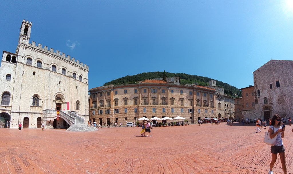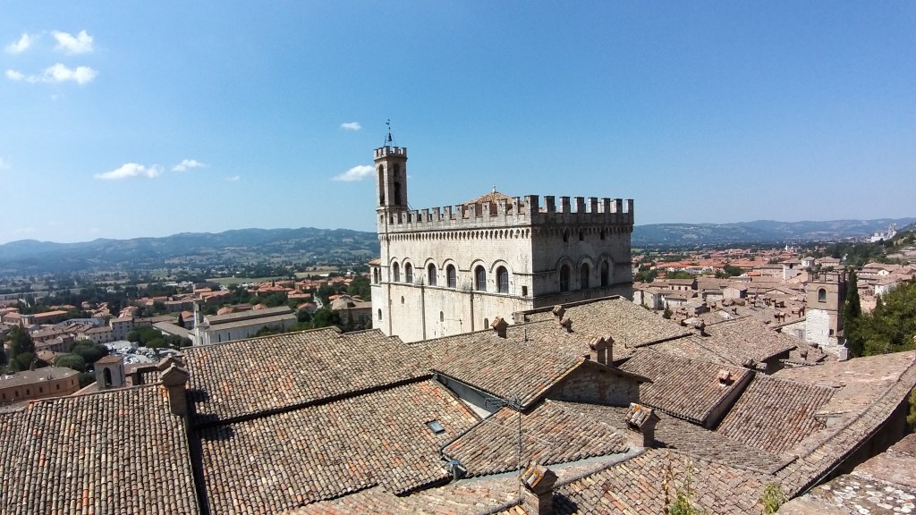 Dopo aver soddisfatto quindi i nostri palati, per smaltire abbiamo fatto due passi nella medioevale città di Gubbio, soprannominata “città grigia” per il colore dei blocchi calcarei con la quale è stata costruita. Sulla Piazza Grande, una vera e propria piazza “sospesa”, si affacciano il Palazzo dei Consoli, con la sua facciata gotica, e quello Pretorio.