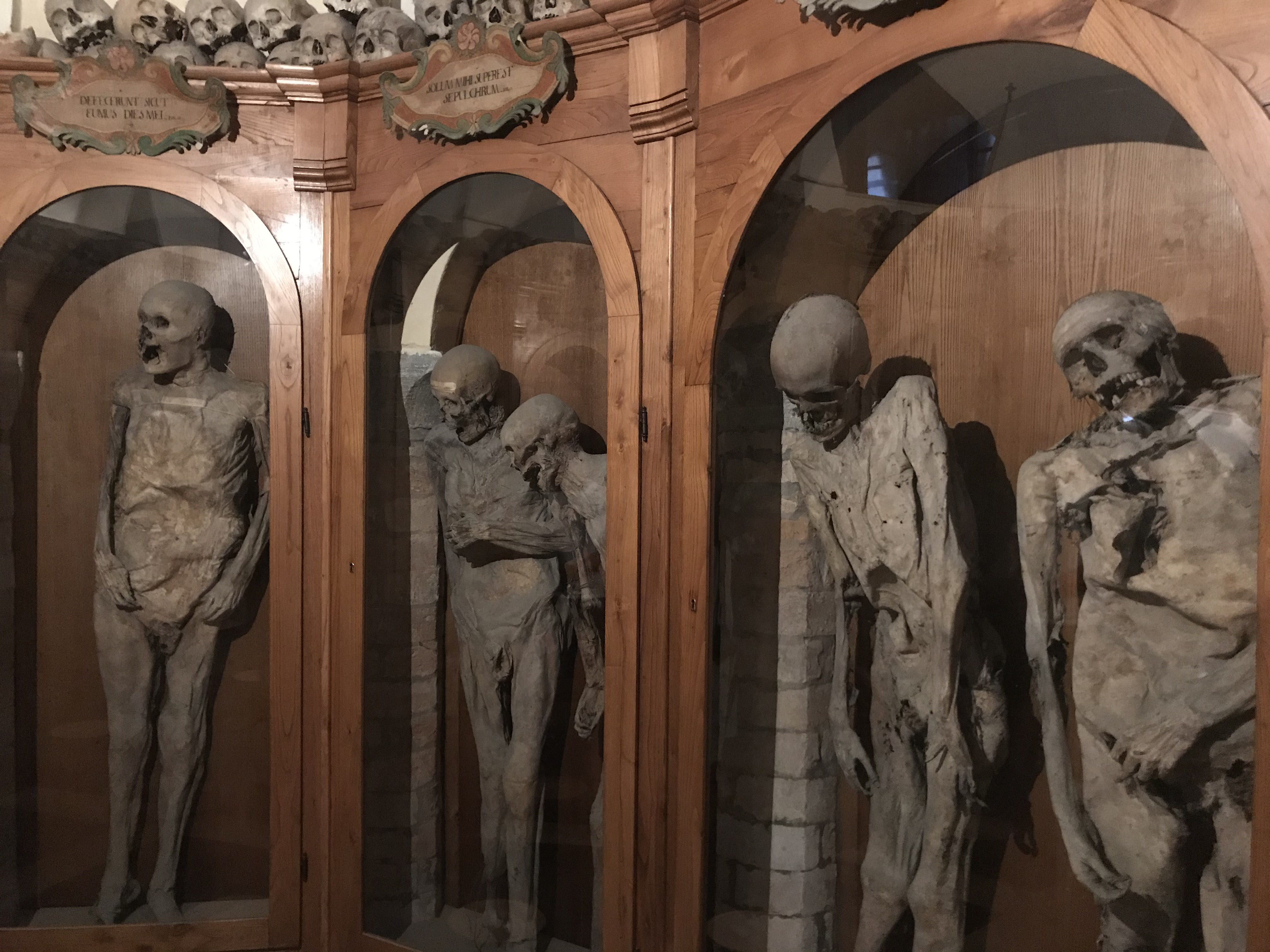 A Urbania abbiamo visitato un luogo particolare, dal gusto un po’ macabro. Si tratta della Chiesa dei Morti. Fondata nel 1380, ospita al suo interno il cosiddetto Cimitero delle Mummie ed è diventata una vera e propria attrazione turistica. Nell’attesa del nostro turno per la visita, ho notato il certificato di eccellenza di Trip Advisor esposto con fierezza all’interno della cappella.