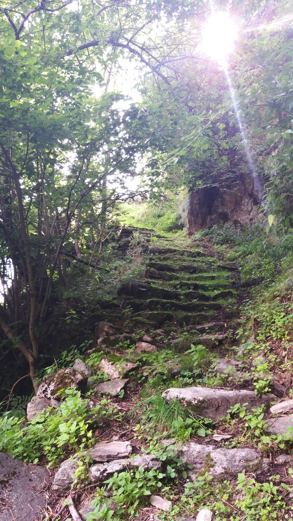 Percorriamo il sentiero pieno di ortiche che si addentra nel borgo e cerchiamo di immaginare come doveva essere difficile la vita quassù.