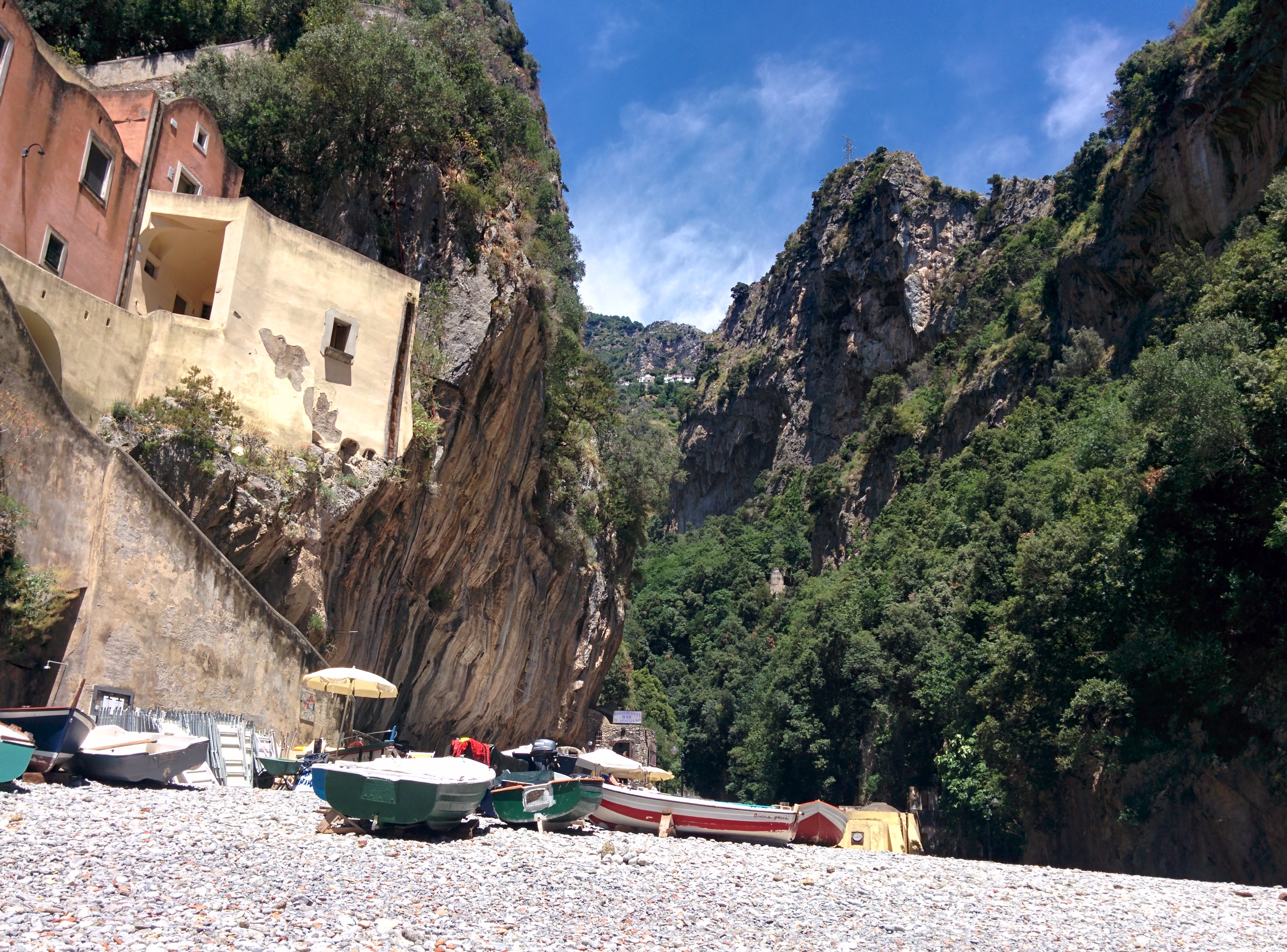 Quel giorno il tempo non era stato dei migliori e l’acqua che bagnava la spiaggetta del Fiordo aveva un colore poco invitante. Ma pare che nelle giornate buone sia davvero cristallina e sicuramente una delle location più affascinanti dove trascorrere una giornata di mare in Costiera Amalfitana. La peculiare conformazione geologica assicura inoltre una temperatura più fresca rispetto ad altre spiagge. Se la vostra intenzione è quella di rosolarvi al sole tenete presente che qui lo potete trovare solo nelle prime ore del pomeriggio!