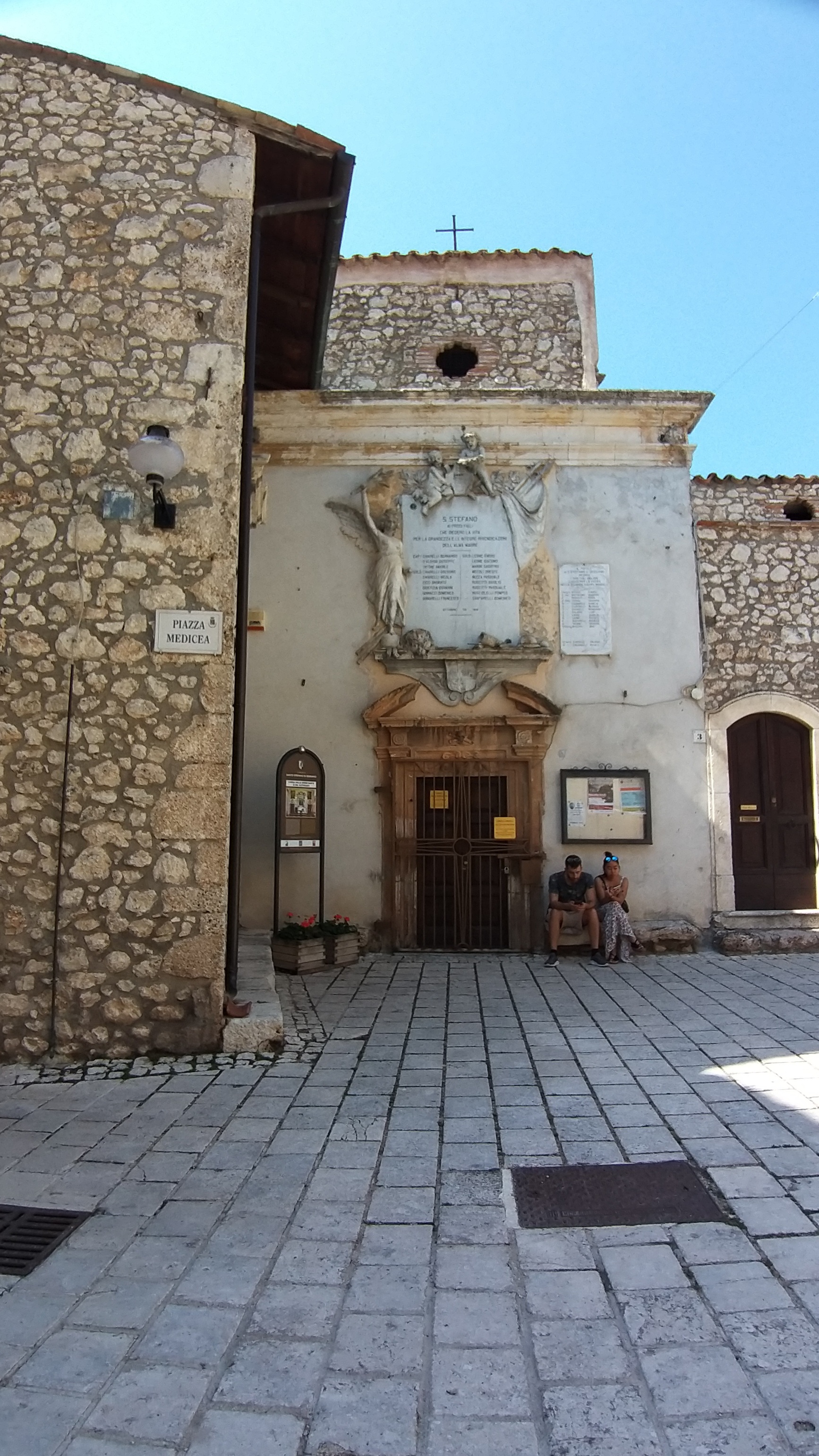 A proposito di torre, gli abitanti di Santo Stefano sono molto legati alla loro Torre Medicea, considerata un vero simbolo per la città. In realtà esisteva già prima dell’arrivo dei Medici, che semplicemente apportarono alcune modifiche e si divertirono ad apporre qua e là per il borgo il loro stemma. La tanto amata torre crollò durante l’ultimo terremoto, anche perché nel corso del ‘900 furono fatte alcune modifiche che appesantirono molto la sua struttura. In attesa di ricostruirla, fu riprodotto il suo scheletro con una struttura in tubi e, in seguito, grazie alla collaborazione dei cittadini che ne conservarono le pietre, le fu data nuova vita. Attualmente è possibile visitarla e dalla sua cima si possono scorgere in lontananza le vette dei massicci che circondano il borgo.