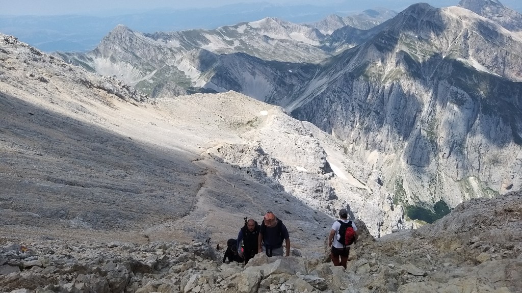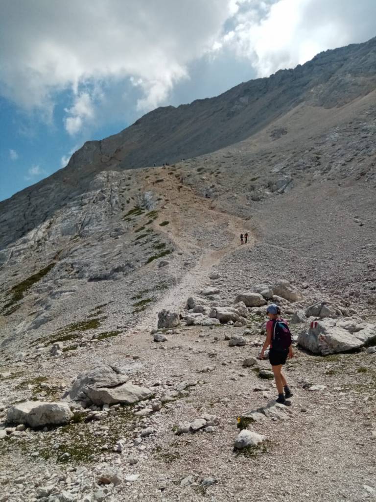 Quel giorno c’era tantissima gente a camminare e molti, così alla vista, sembravano escursionisti alquanto improvvisati. Oltre all’attrazione magnetica della vetta, sicuramente vedere così tanta gente in cammino ci ha fatto sottovalutate l’impresa e ci ha dato coraggio per proseguire, anche quando una bella parete di ghiaia e roccia ci si è stagliata davanti annunciando, dopo più di due ore di cammino, un altro 400 metri di dislivello.