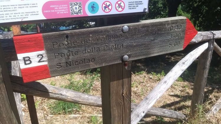 Il sentiero da imboccare dal Centro Visite è il B2, ma una volta arrivati al primo ponte bisogna svoltare prendendo il sentiero S. Distratti dalla bellezza dei luoghi noi abbiamo continuato sul B2, sbagliando quindi strada e ritrovandoci senza saperlo sull’itinerario da 19km.