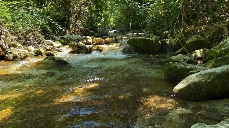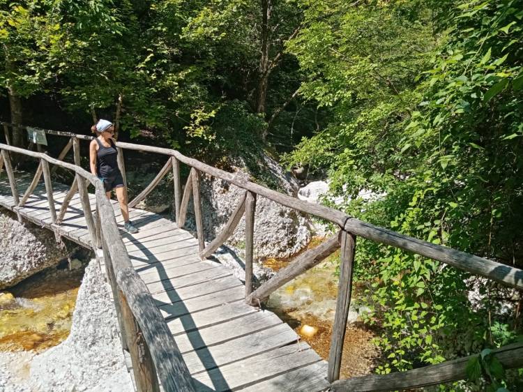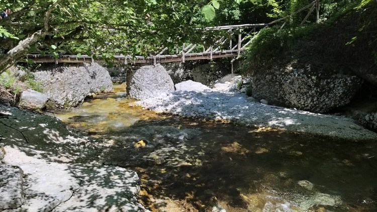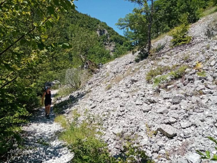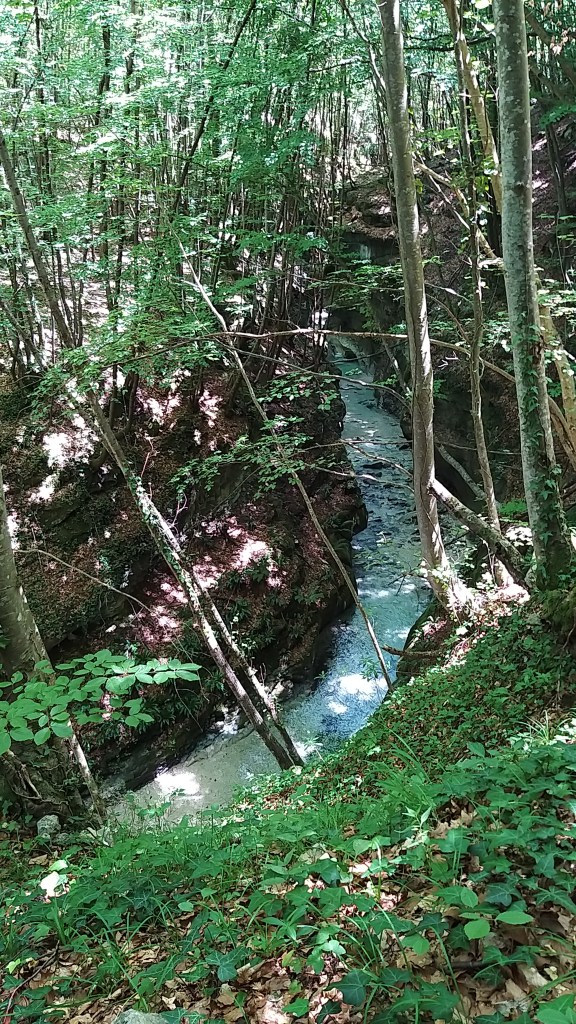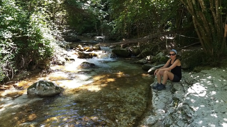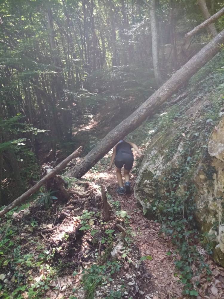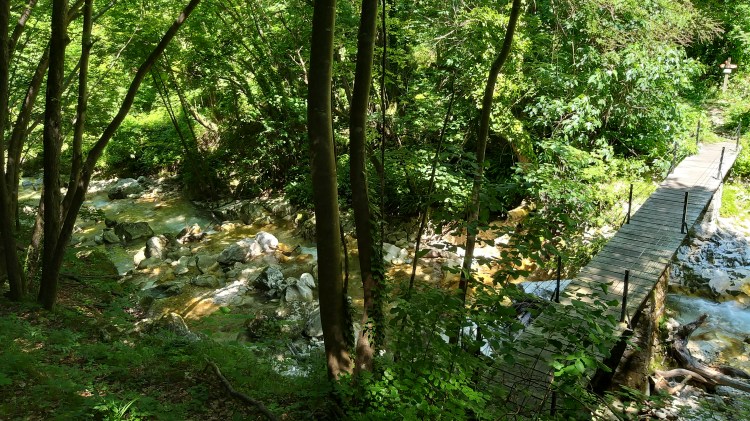 Per fortuna a un certo punto la strada era interrotta e quindi ci è venuto un mezzo dubbio; un signore del parco, impegnato a pulire i sentieri dalle erbacce, ci ha aiutati a orientarci verso la direzione giusta. Non ci è dispiaciuto fare quel pezzo aggiuntivo, che ci ha permesso di vedere una parte di bosco molto bella e delle grandi gole, levigate in modo molto particolare, dalle acque del fiume.