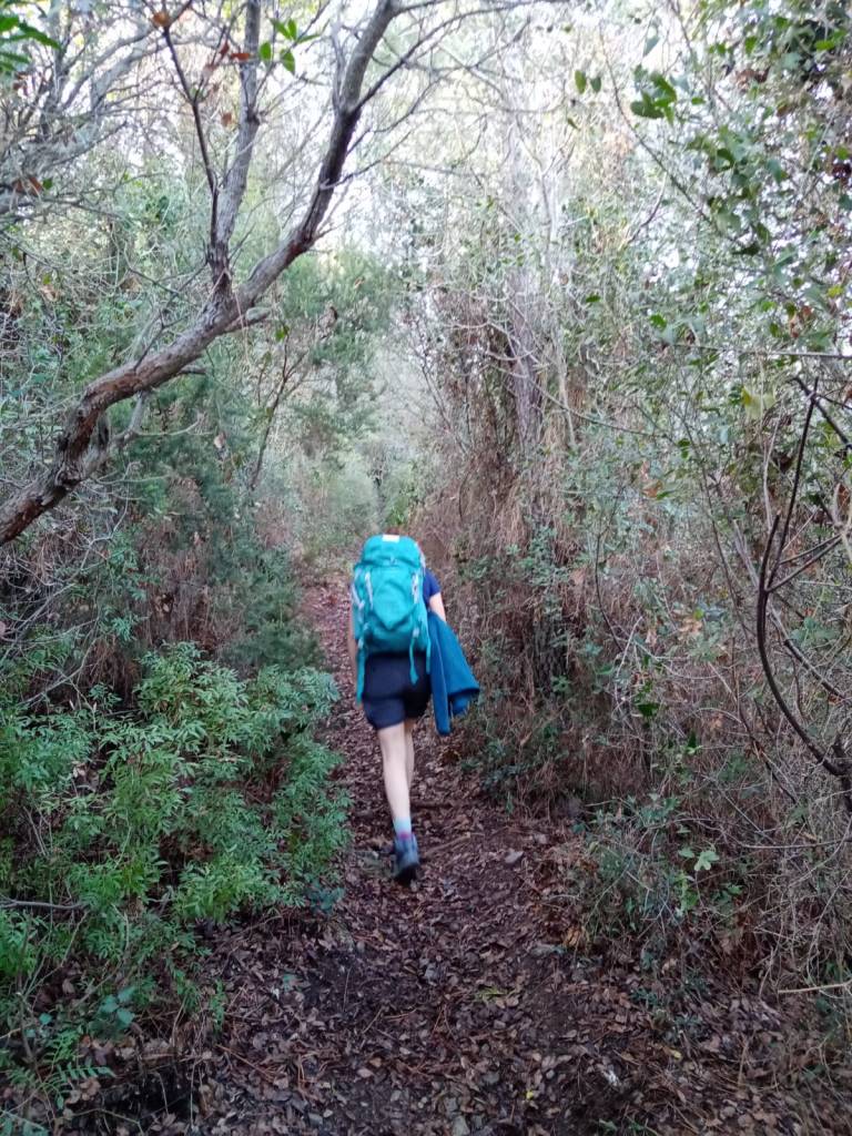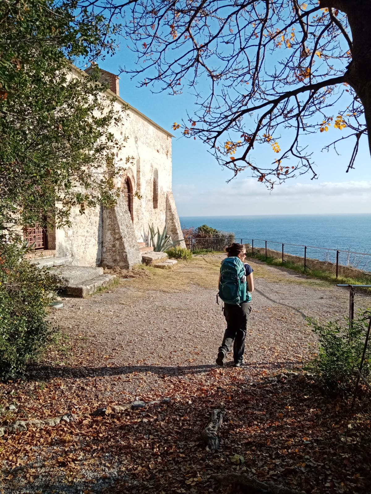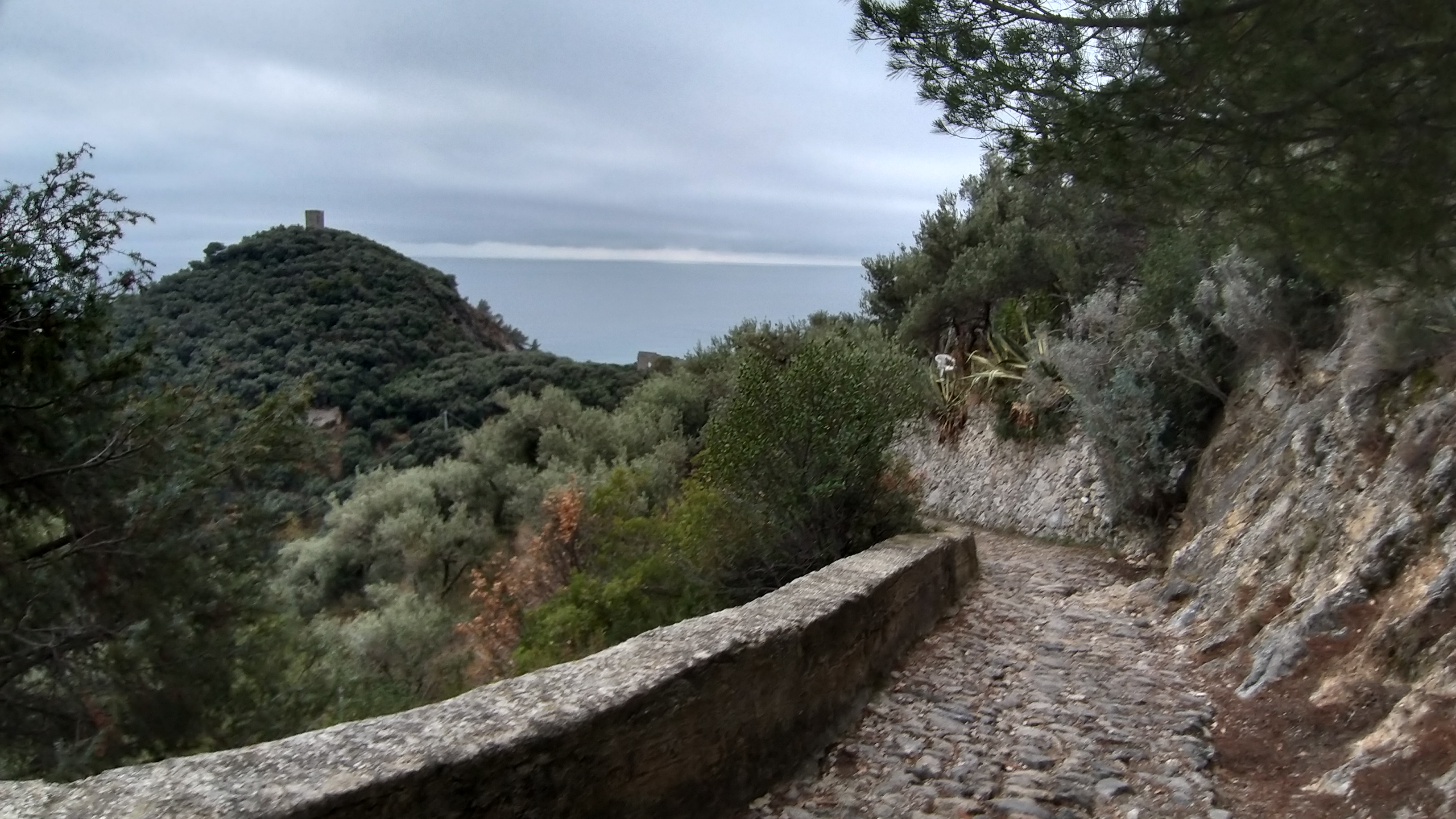 Vista la mia scarsa memoria e senso dell’ orientamento, non so dare una descrizione molto precisa di questa seconda parte di itinerario (consiglio quindi di scaricare la traccia del percorso). Di certo si prosegue lungo la Passeggiata Dantesca verso Noli, godendo tra l’altro del bel paesaggio sul golfo e il castello. A un certo punto, dopo aver passato i resti della chiesa di San Lazzaro, sulla sinistra si scorge un cartello che indica il “Sentiero Amico” che porta a San Michele. Ci si accorge subito che il sentiero tanto amico non è, perché sale su bello dritto senza pietà e sembra non finire mai! Siamo nel mezzo del bosco, circondati dalla folta vegetazione mediterranea. Sicuramente il percorso sul mare è più panoramico, ma a me piace chiudere i giri ad anello per scoprire anche altri sentieri.