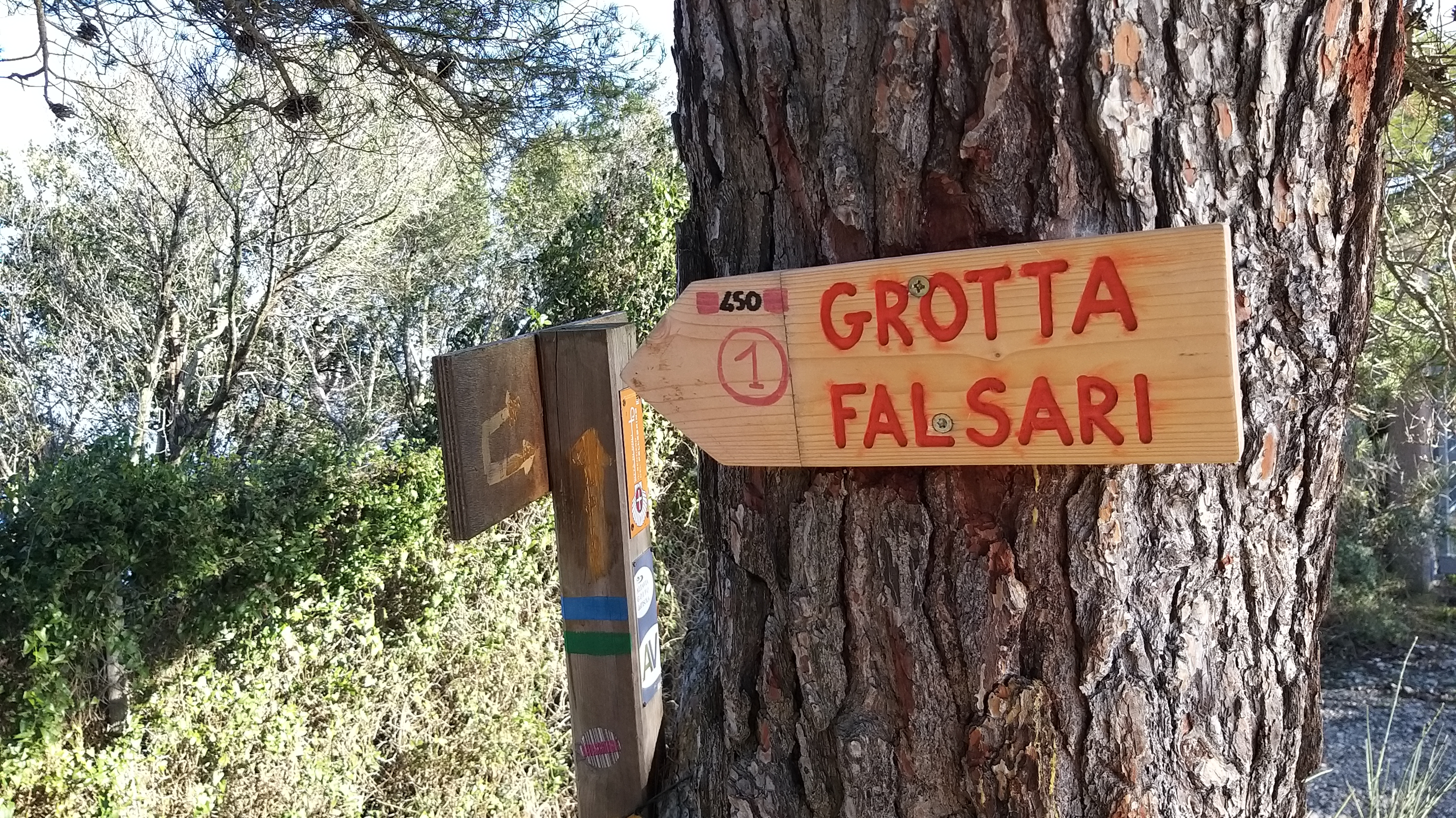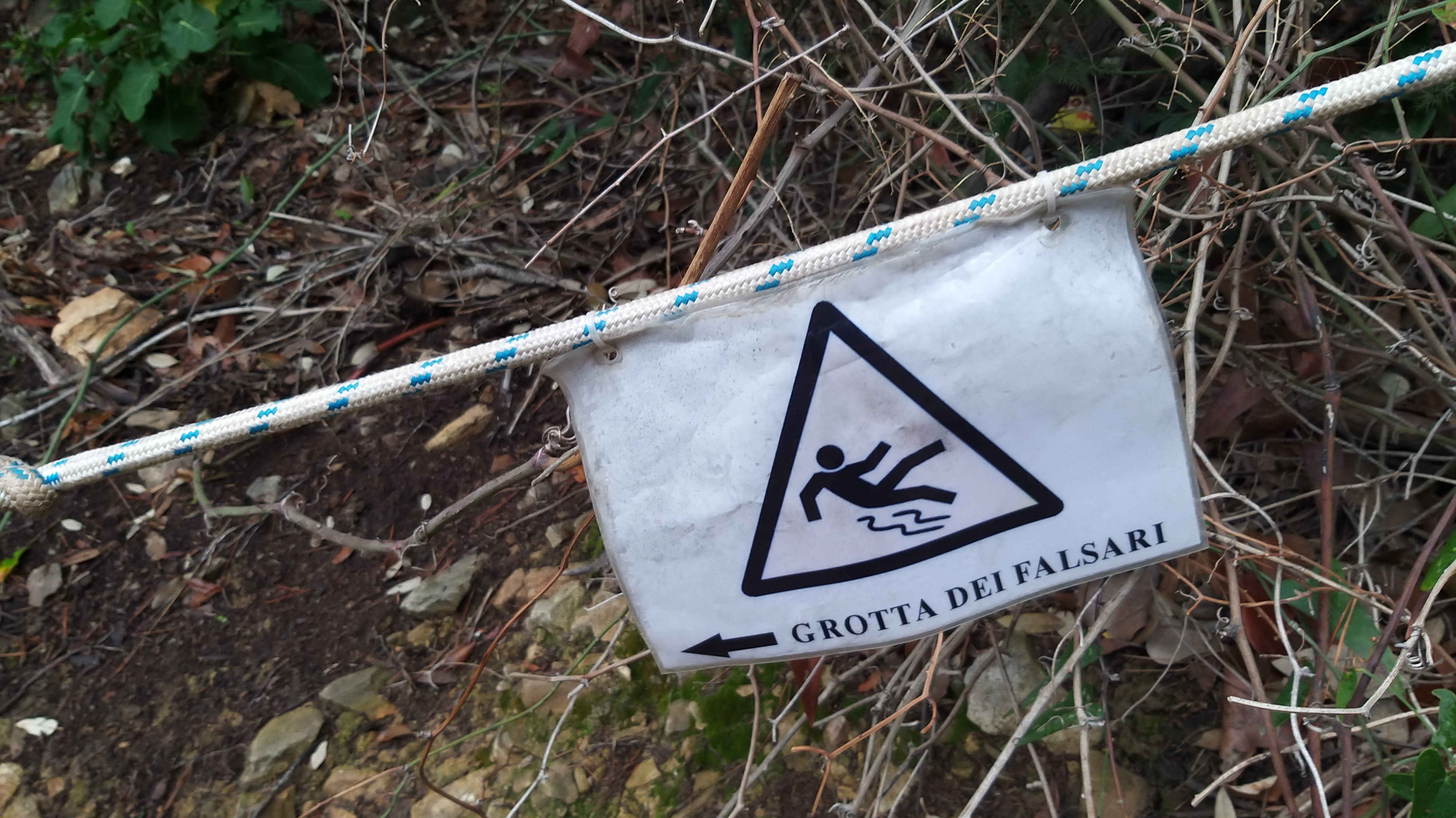La tappa alla Grotta dei Falsari è assolutamente consigliata, in quanto si tratta del punto più particolare dell’itinerario. Qui però il sentiero scende ripido e si fa più impervio, richiedendo qualche dote ginnica. E’ comunque dotato di corde per evitare di scivolare. Un cartello all’inizio della deviazione suggerisce di non indossare tacchi. In Liguria c’è una certa tendenza a intraprendere cammini in infradito, solo perché la vicinanza del mare fa pensare che sia tutto più facile.