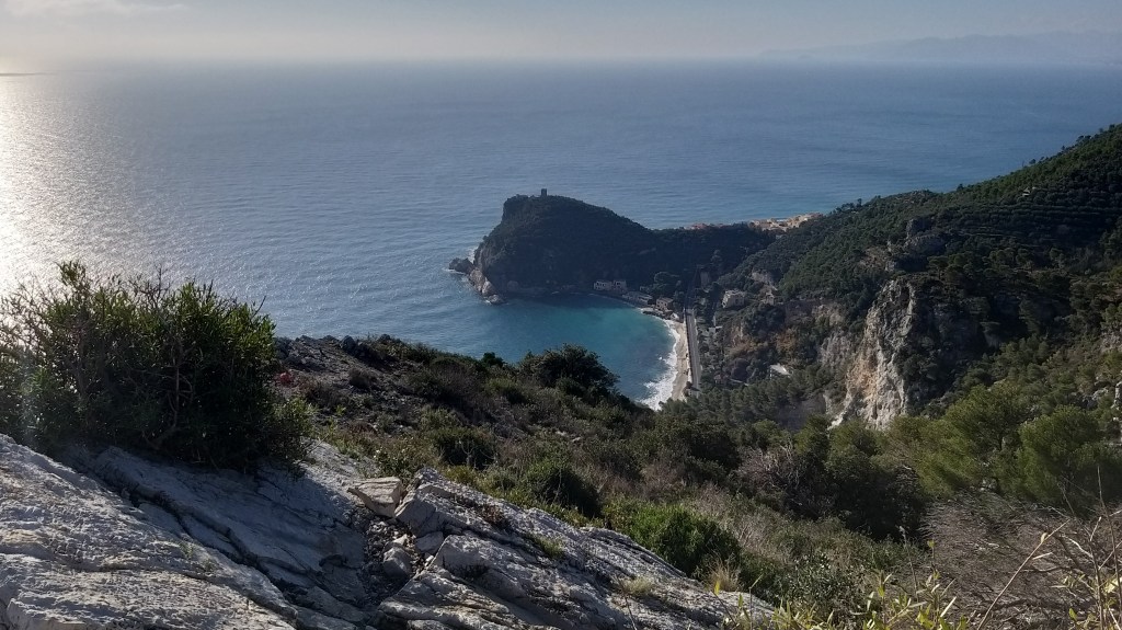 Riprendendo il sentiero principale, poco dopo la torre, si arriva a un promontorio dal quale si può godere di un bellissimo panorama sulla falesia di Punta Crena, le colline e il mare. Poco più avanti c’è un altro punto panoramico e poi si supera il bivio per le Manie, tenendosi sulla destra. Stranamente è tutto ben segnalato.