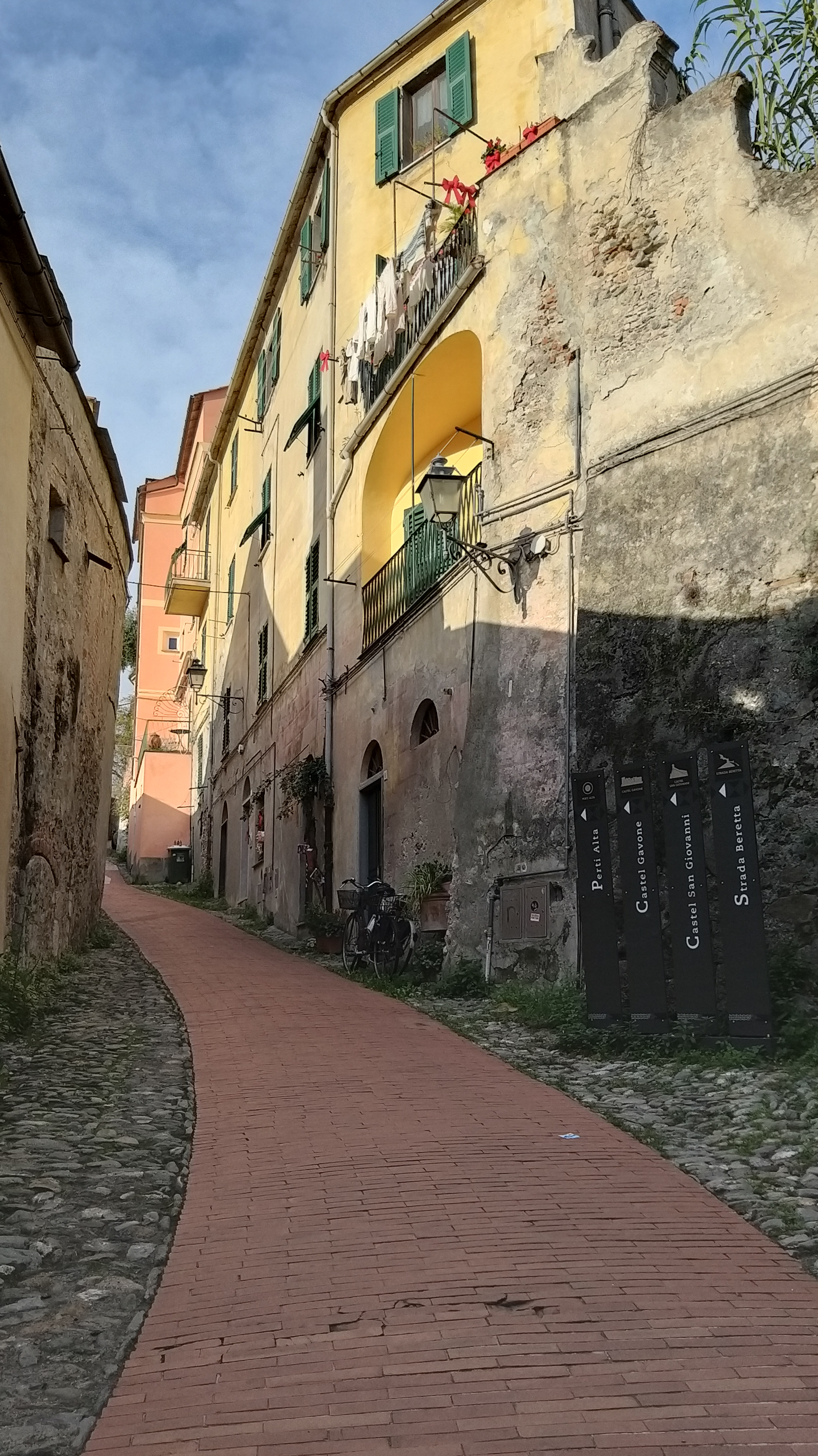 Abbiamo lasciato l’auto a Finalborgo (con incredibile fortuna abbiamo trovato un posto non a pagamento), che è quello che consiglio di fare se si vuole approfittarne per fare due passi anche nel caratteristico borgo. L’alternativa è quella di salire con l’auto a Perti Alta, dove si può lasciare abbastanza abusivamente lungo la strada in prossimità della Chiesa dai Cinque Campanili (Nostra Signore di Loreto), oppure in località Cianassi. Ovviamente a seconda di dove si parcheggia, il giro prenderà una direzione diversa.