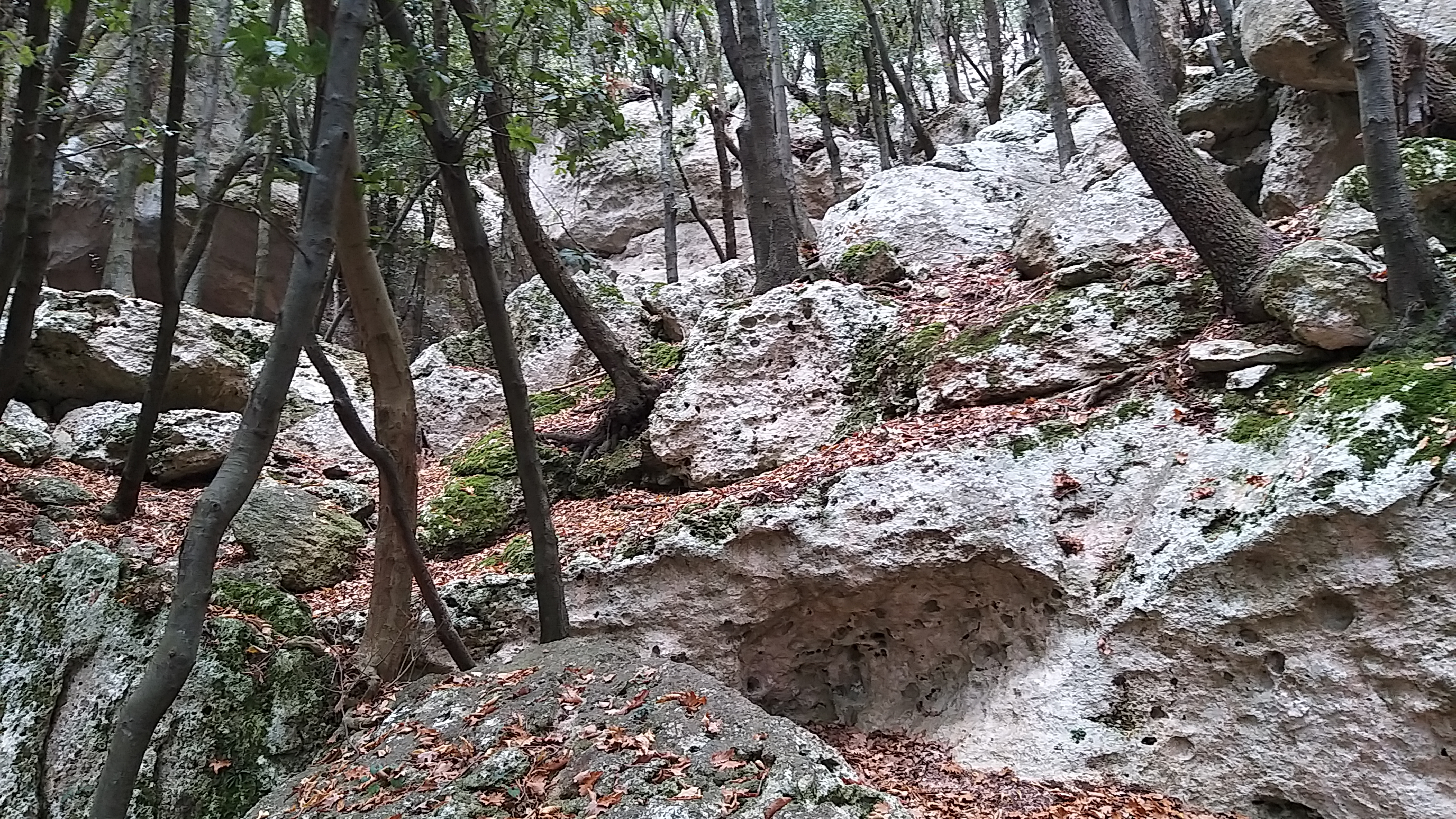 La particolarità dell’ambiente di questa zona è dovuta alla tipologia di pietra bianca, calcarea, delle pareti rocciose, che nascondono tra l’altro una grande quantità di grotte.