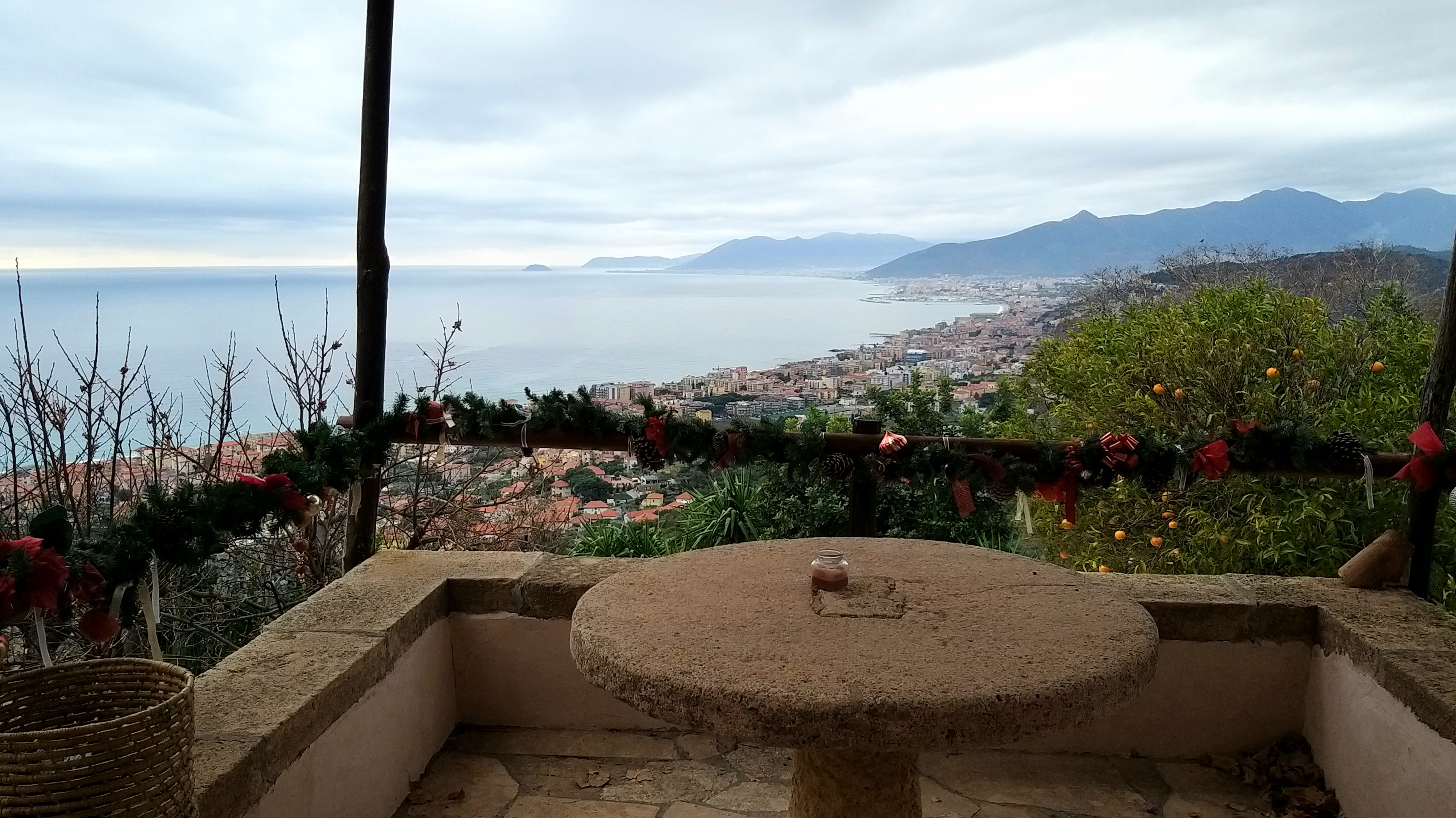 Ogni volta che passo da questo angolo di mondo sospeso sulla costa ligure, il piccolo borgo di Verezzi, mi immagino seduta a questo tavolo di pietra, ancora in pigiama, bevendo un caffè; oppure la sera a innamorarmi del tramonto che non è mai uguale. L’ho pensato talmente tante volte, che mi sembra quasi di esserci stata davvero.