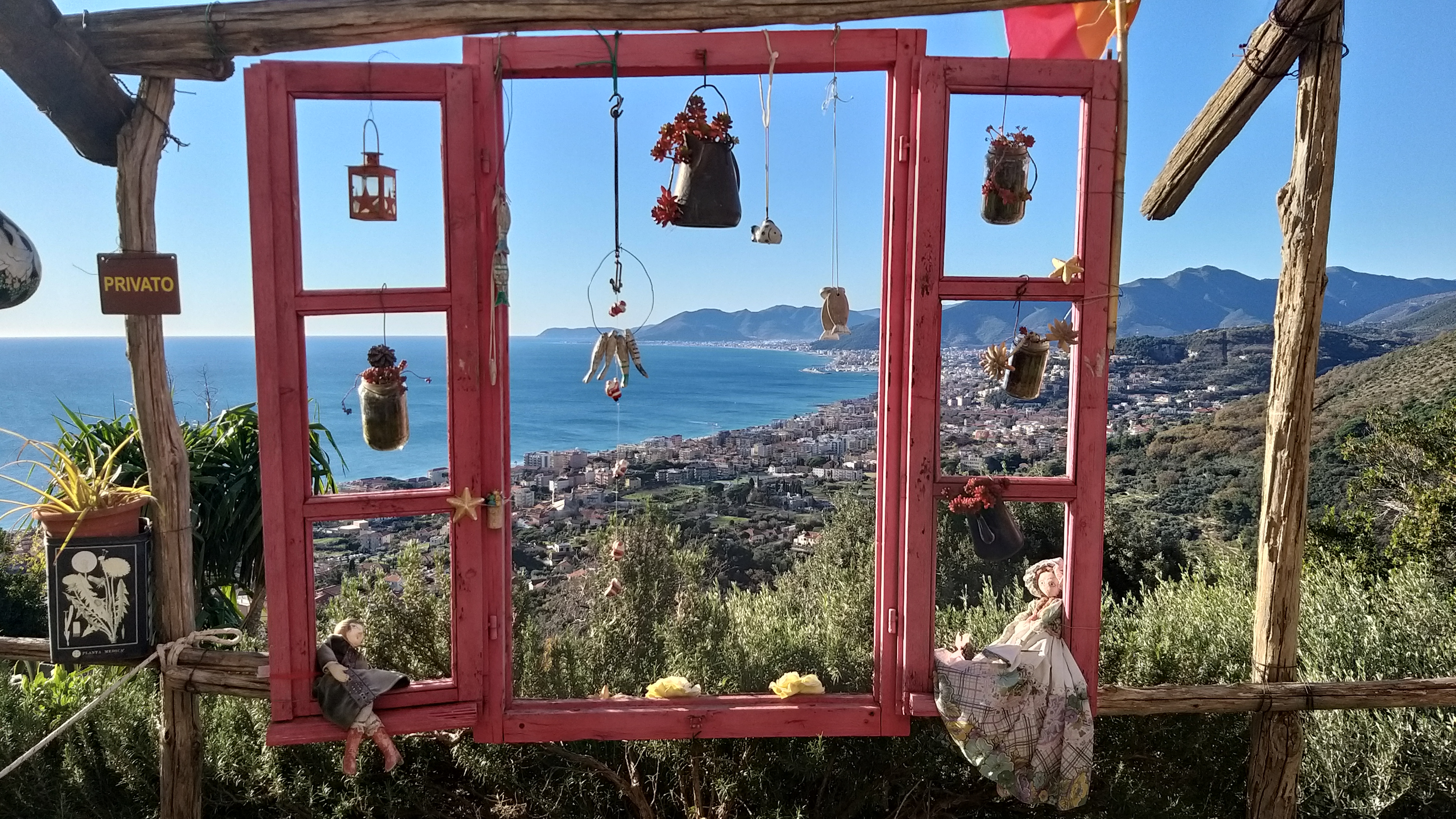 Penso che sia anche uno dei b&b più fotografati, da villeggianti e passanti, proprio per i suoi esterni, ornati con oggetti dei vecchi tempi e lo scheletro di una finestra, proprio la finestra dei sogni che si affaccia sul golfo.
