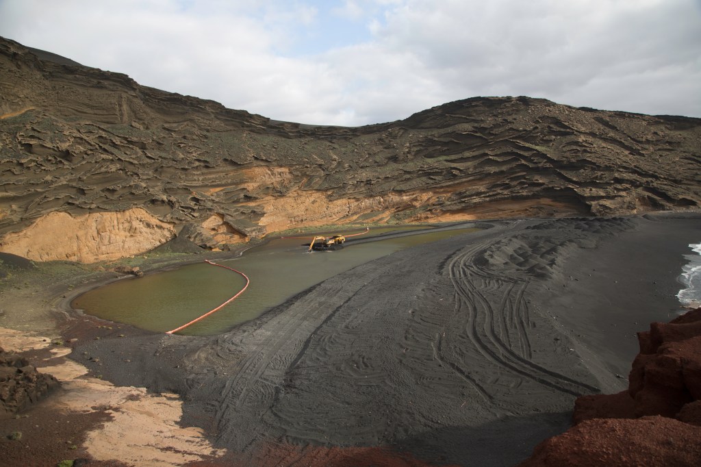 La laguna è nata da una antico cratere vulcanico che poi è sprofondato e si è riempito di acqua marina. In questa pozza ricca di sali minerali di origine vulcanica hanno prosperato organismi vegetali ed alghe che, per l’appunto, danno all’acqua questo particolare colore. Qui è stata scattata la fotografia della locandina del film “Un milione di anni fa” del 1966.