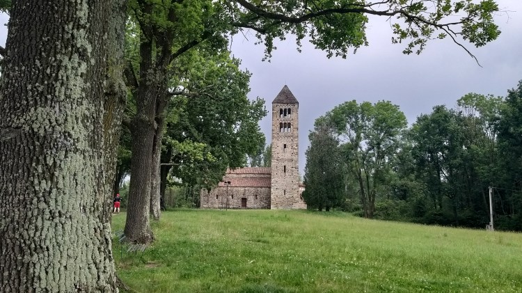 Sospesa nel tempo e nel silenzio, dopo una tappa in cui non ho incontrato anima viva, mi sono goduta ancora un po’ di solitudine, ascoltando la pioggia estiva dal porticato della chiesa, per poi cenare abbondantemente al Bocciodromo della Serra, unico locale dove ci si può sfamare.