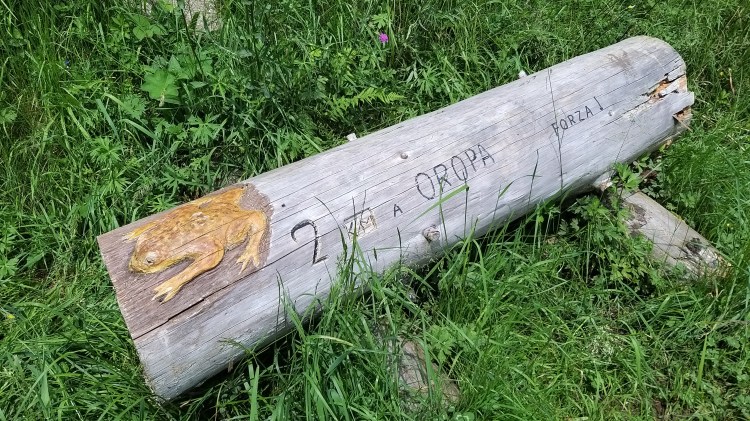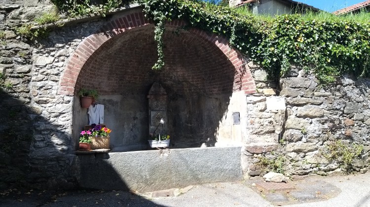Il cammino riprende tra boschi, pascoli e saliscendi vari. Una fontana del viandante gentilmente allestista da un privato, dona un po’ di sollievo dopo una salita abbastanza impegnativa, su asfalto e in pieno sole, in prossimità di Chiavolino.
