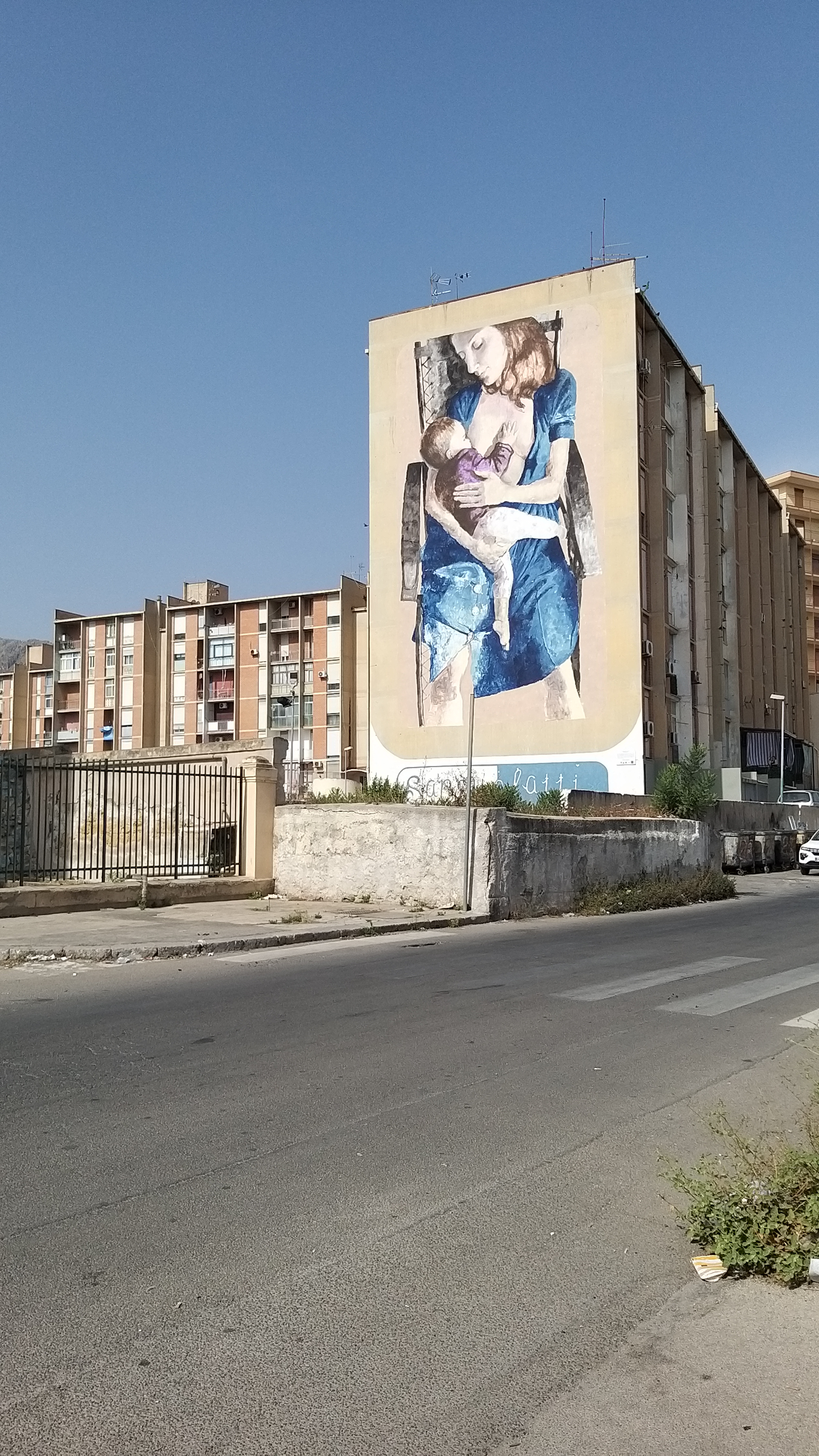 Tutta la città è infatti un gigantesco museo d’arte cielo aperto, in cui camminando e camminando, in ogni quartiere, dal centro a quelli più periferici, troviamo le immagini di eroi moderni, quali coloro che si opposero alla mafia, e quelle di sante e santi reinterpretati in chiave attuale.