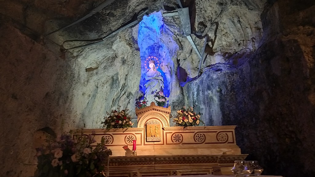 Ma diamo uno sguardo alla storia e alla leggenda. Poco lontano dal centro di Palermo, il Monte Pellegrino custodisce la grotta (ora inglobata in un santuario) in cui nel 1170 morì da eremita Rosalia Sinibaldi.