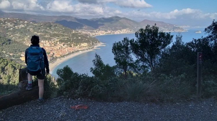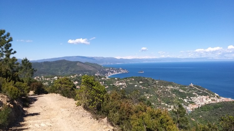 Una volta risalito il crinale, in località Semaforo, si svolta a destra e si percorre la sterrata che risale più dolcemente il pendio regalando anche diversi scorci sul golfo di Noli.