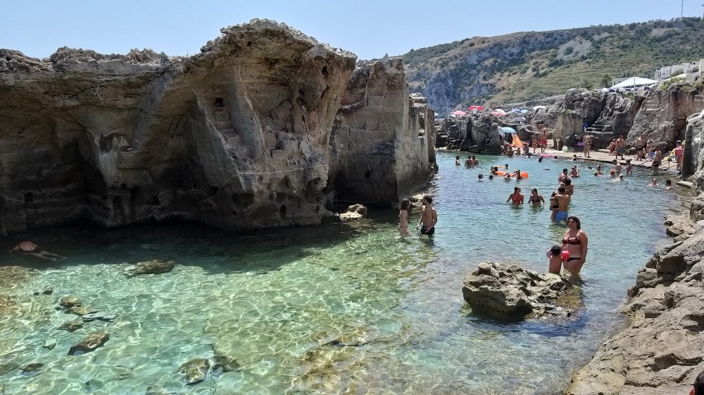 Il vero ombelico del mondo del Salento è però il litorale nei pressi di Porto Cesareo, un posto dove le persone vanno per sentirsi davvero fighe. Non sto qui a fare l’elenco delle numerose e prestigiose spiagge della zona, perché tanto non ci sono stata. Ho solo passato una giornata nella spiaggia di Torre Lapillo. Al di là del fatto che io non sono amante della costa bassa e sabbiosa, questo tratto costiero, per i miei gusti personali, è davvero tanto e troppo umanizzato: stabilimenti balneari lussuosi, musica, animazione.